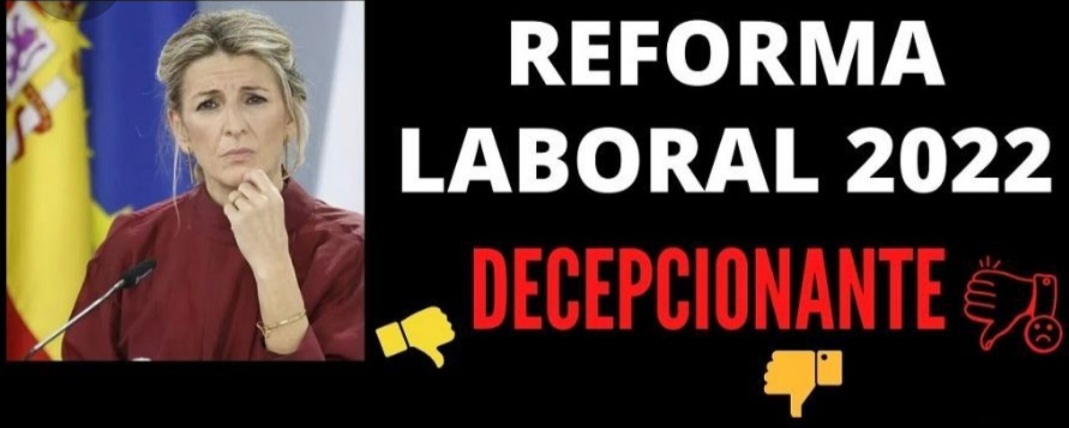 Sindicalistas de Base considera que, la mal llamada Reforma Laboral aprobada por el Gobierno, los sindicatos mayoritarios y la CEOE, es una auténtica decepción para la clase trabajadora, más con las altas expectativas creadas desde el Gobierno y el Ministerio de Trabajo a la derogación de los "aspectos más lesivos" de la Reforma Laboral del PP de 2012..