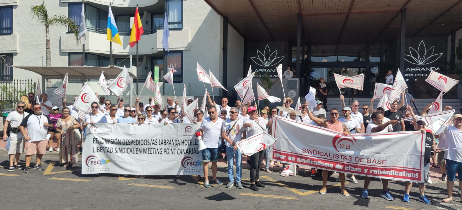 Sindicalistas de Base de Canarias seguirá combinando la vía jurídica y las movilizaciones hasta que Meeting Point Canarias respete la Libertad Sindical y cumpla con los derechos laborales de sus trabajadores/as, y mantendrá de forma indefinida sus concentraciones a las puertas del Hotel Labranda Costa Adeje el primer viernes de cada mes.