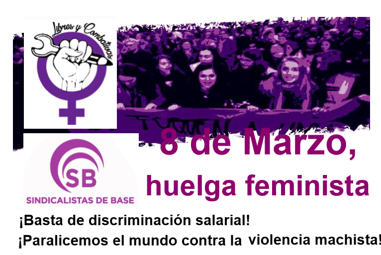 Desde Sindicalistas de Base manifestamos nuestro apoyo a la Huelga Feminista convocada para el próximo 8 de marzo. Ese día tenemos que visibilizar las desigualdades que sufre la mujer por el hecho de serlo en los centros de trabajo y en la sociedad en general. Por eso el 8M Sindicalistas de Base anima a todas las mujeres a parar el consumo, el trabajo doméstico y los cuidados, el trabajo remunerado, los estudios y demostrar así que sin las mujeres la sociedad no produce y se para. Sindicalistas de Base plantea que desde nuestro ámbito de negociación en las empresas y en lo que nos atañe como sindicato impulsar acciones contra la discriminación salarial y contra todos los ataques y recortes que hemos sufrido durante los últimos años y que siempre resultan más duros para la parte más débil de la sociedad. No queremos que esta jornada quede en un mero paro simbólico, queremos remover conciencias y movilizar a la sociedad, queremos que el 8 de marzo se convierta en una jornada de huelga y movilización contundente que ponga encima de la mesa la fuerza que tenemos, ¡y como sí podemos cambiar las cosas!